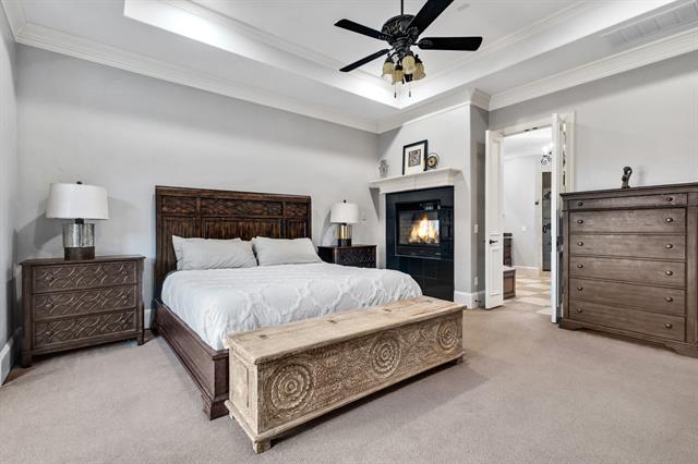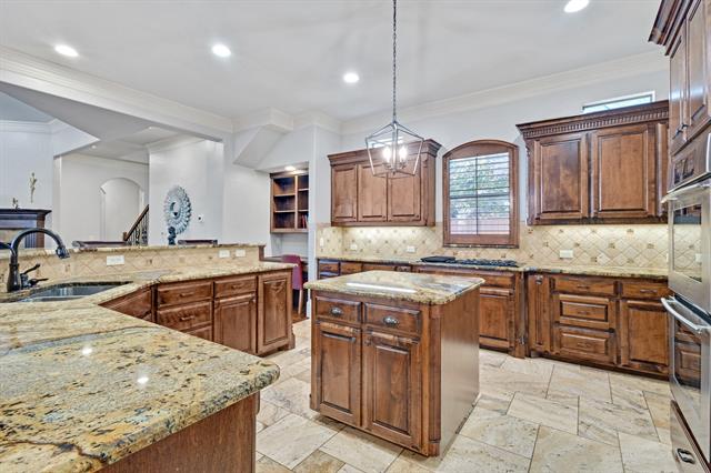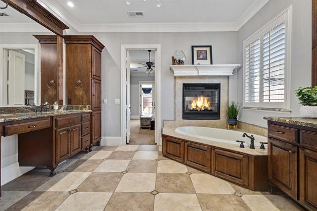 Experience refined living in this exceptional 5-bedroom, 5-bathroom residence, situated on a quiet cul-de-sac in the desirable Shaddock Creek Estates. The spacious open floor plan features rich hand-scraped hardwood floors throughout the main living areas. The gourmet kitchen offers stainless steel appliances, including a gas cooktop, double ovens, and built-in refrigerator, along with abundant cabinetry, generous counter space, and a built-in work niche. A flexible space at the entry is ideal for formal dining or a second home office and is complete with a butler’s pantry, gated wine closet, and wet bar—perfect for entertaining. The spacious family room showcases views of the spectacular backyard and is anchored by a cozy fireplace. A dedicated home office with custom built-ins and its own fireplace adds sophistication. The fully equipped media room includes a projector, screen, and surround sound speakers that convey. The expansive primary suite is a private retreat featuring Anderson French doors with direct access to the backyard oasis and a stunning double-sided fireplace. Upstairs offers three generously sized secondary bedrooms, each with walk-in closets and private baths, plus a large game room. Additional features include interior and exterior intercom and sound systems, tankless water heater (2024), new roof (2022), and whole-home water filtration. The resort-style backyard features a heated saltwater pool with water feature and a recently expanded custom outdoor kitchen with stone countertops, stainless smoker, cooktop, storage, refrigerator, outdoor TV, and sound bar. Ample green space remains. Complete with a 3-car garage, gated driveway, and private courtyard gate, this home offers luxury, comfort, and exceptional amenities—perfect for everyday living and entertaining.