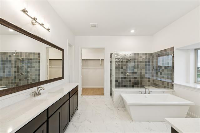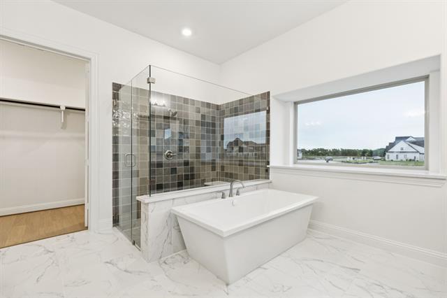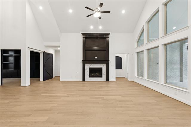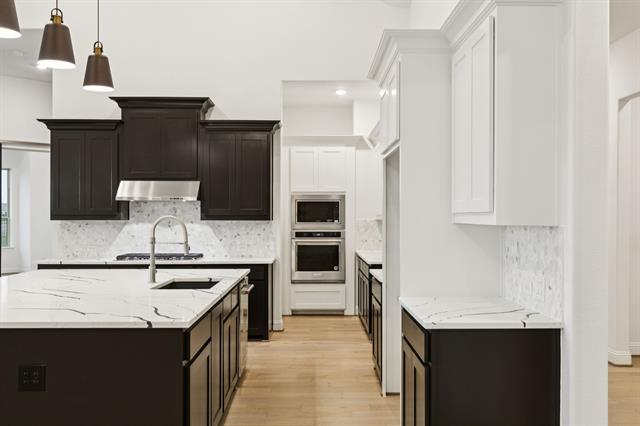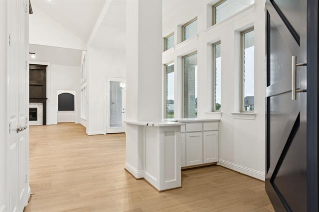 Step into elevated living with this breathtaking Modern Tudor residence — a perfect blend of architectural heritage and contemporary sophistication. From its steep gables and light artisan brickwork to the bold black-trimmed windows and thoughtfully illuminated landscaping, every detail exudes timeless elegance and curb appeal that captivates from sunrise to sunset. Inside, the home unfolds into expansive open-concept living. Vaulted ceilings crown the light-filled great room anchored by a sleek white marble fireplace, while panoramic windows frame serene views and bathe the space in natural light. The chef’s kitchen features a waterfall island, striking two-tone cabinetry, and designer pendant lighting — offering a refined space for both casual gatherings and upscale entertaining. The primary suite delivers a true retreat with its spa-inspired bath boasting dual vanities, marble flooring, a soaking tub, and glass-enclosed shower. A private flex room serves as a sophisticated study or creative lounge, complete with built-in shelving and lush backyard views. Outside, enjoy the tranquility of a covered patio with exposed beams and brick columns, opening to a manicured lawn and scenic neighborhood vistas. Evening ambiance is enhanced by strategic uplighting that accentuates the home’s facade and transforms the rear elevation into a serene haven. Highlights: - Modern Tudor architecture with steep gables and artisan finishes - Expansive windows and vaulted ceilings for abundant natural light - Designer kitchen with waterfall island and premium appliances - Spa-worthy primary bath with marble details and walk-in closet - Sophisticated study with custom built-ins and backyard views - Covered patio for seamless indoor-outdoor living - Landscape lighting and sunset-ready curb appeal This home delivers timeless charm, contemporary luxury, and a curated lifestyle — ready for the most discerning buyer to make their mark.